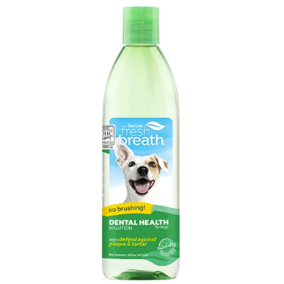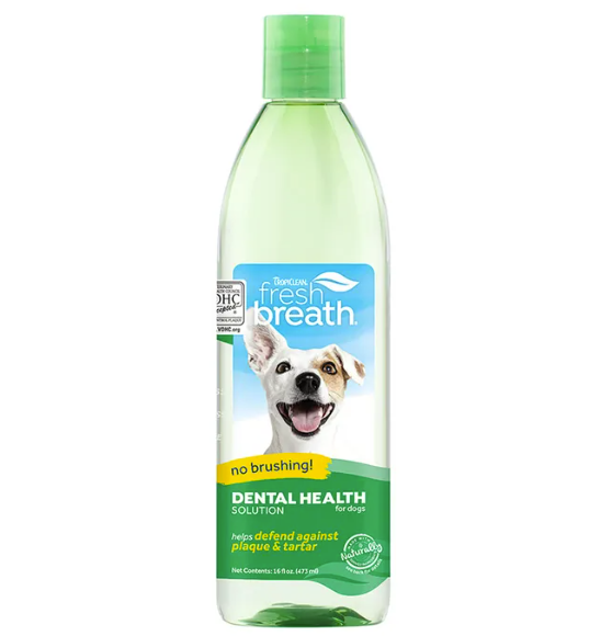 Cleaning your pet's teeth is about more than just getting their pearly whites to sparkle - it's an important step in their overall health and wellness. With TropiClean Fresh Breath Dental Health Solution, dogs can benefit from daily plaque and tartar defense. Easy-to-use Dental Health Solution gives your dog clean teeth and fresh breath-no brushing required!